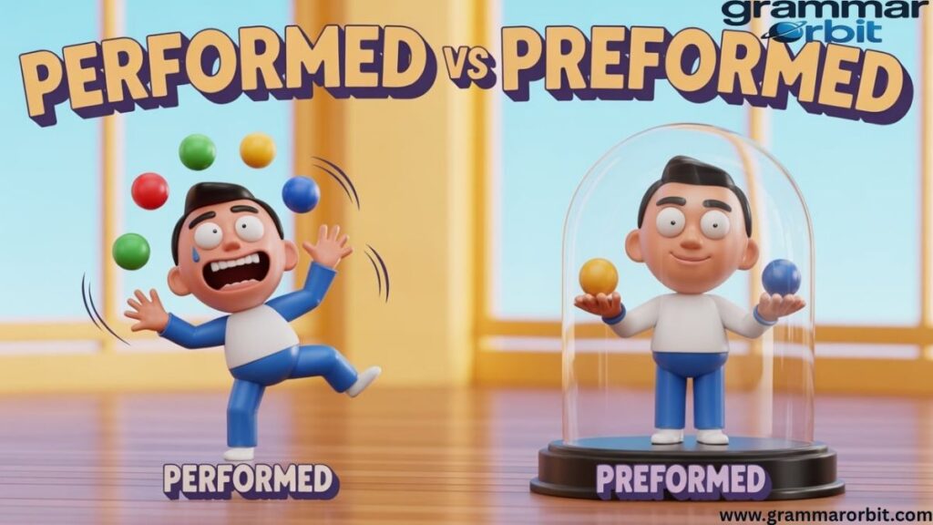 Perform vs Preform grammar confusion happens because they sound nearly identical. But remember: Perform means action. Preform means preparation.