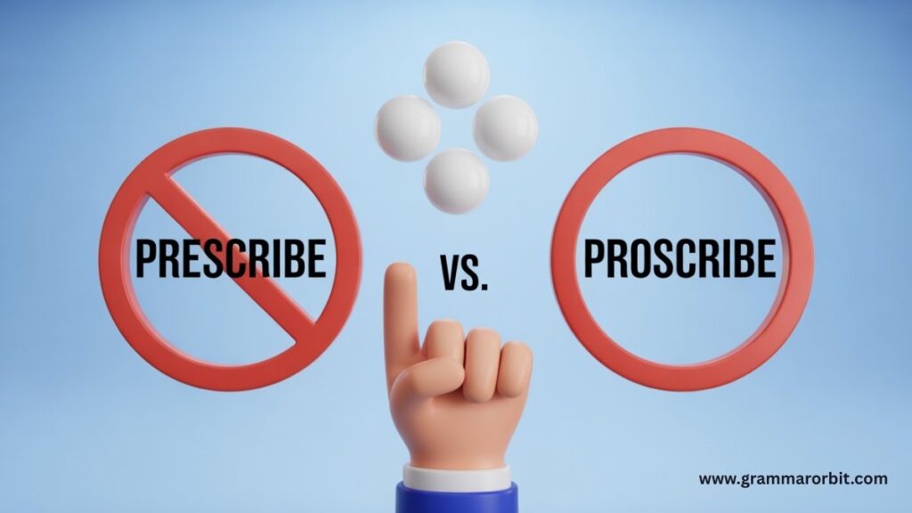 Ever stared at a sentence and thought, “This sounds smart… but is it secretly wrong?” Welcome to the world of prescribe vs proscribe, where one innocent looking letter can turn good advice into a strict ban. Mix them up, and suddenly a doctor is outlawing medicine or a law is approving crime. Awkward. These two words sound alike, dress alike, and show up in formal writing just to cause chaos. That’s why the prescribe vs proscribe confusion trips up writers, professionals, and grammar lovers alike. The good news? Once you see the difference clearly, you’ll never mix them up again and your sentences will finally say what you actually mean.